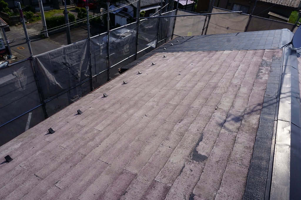 以前他社にて塗り替えをされた平板スレート屋根、カラーベストといわれる屋根です。