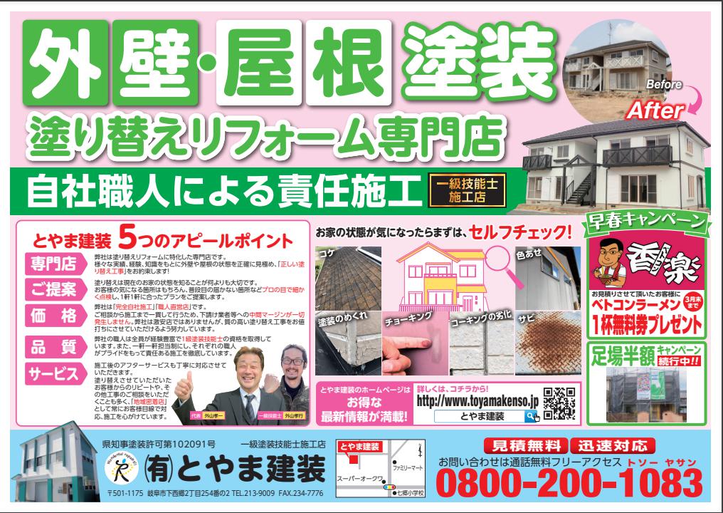 住宅の塗り替え、吹付工事、各種防水工事のことなら、岐阜県岐阜市にある地元密着の「とやま建装」にお任せください! 会社概要 対応エリア 受付時間【09:00~18:00】 HOME 選ばれる理由 NEWキャンペーン 塗料講座 塗装の流れ 施工事例 お客様の声 会社概要 HOME 選ばれる理由 NEWキャンペーン 塗料講座 塗装の流れ 施工事例 お客様の声 会社概要 toyamasama 前へ 一覧へ 2023年1月24日 前へ 一覧へ