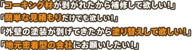 一級塗装技能士の資格を持つ、経験豊富な職人が「無料雨漏り診断」・「無料建物調査」を実施いたします。 「なぜ雨漏りが起こっているのか?」「建物の劣化・不具合がどれほど進んでいるのか?」等、建物の現状や原因をしっかりと把握し、その後、適切な工事方法を提案いたします。