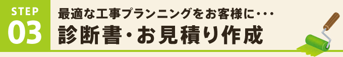 無料雨漏り診断・無料建物調査の内容をもとにした診断書を作成いたします。 その際、お客様がとやま建装の施工内容をご理解いただけるように、診断書の内容や調査項目等について図面や写真を使用しつつしっかりと説明させていただきます。 その後、細かな費用、具体的な工事内容、工事工程を詳細に記入した正確な無料見積を作っていきます。