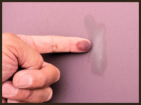 - 外壁の表面を手で触ってみてたら白い粉がついた。